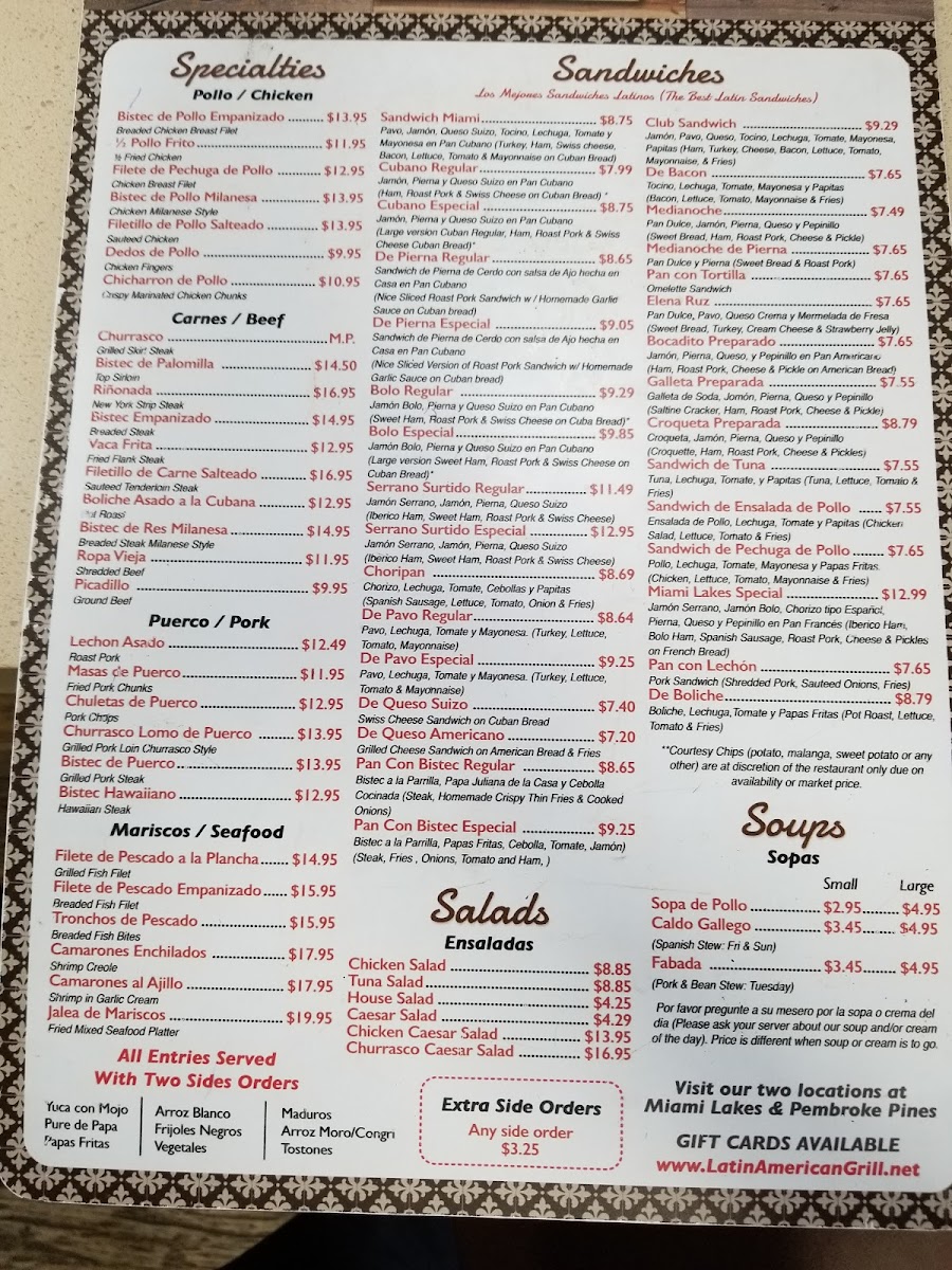 “ My favorite Cuban restaurant is finally open once again after what felt like an eternity of a remodel. You can not go wrong with this place. The food and service is great and the atmosphere is clean and comfortable. I’d put Latin America as the number one Cuban restaurant in Miami Lakes! ”